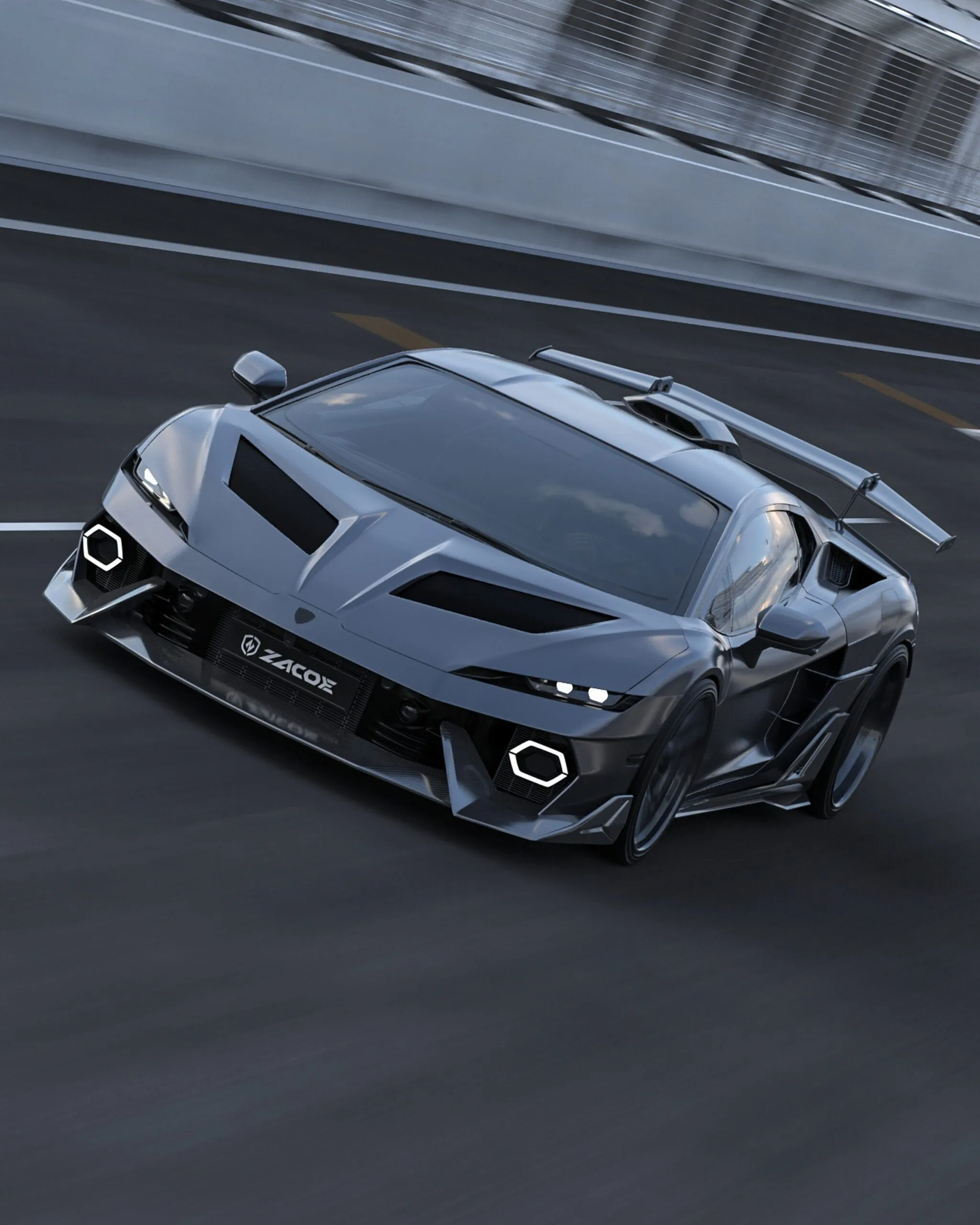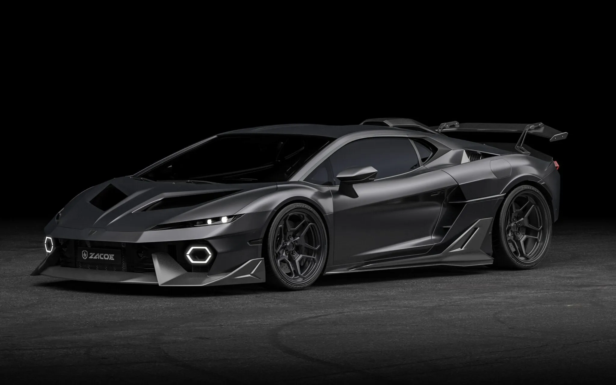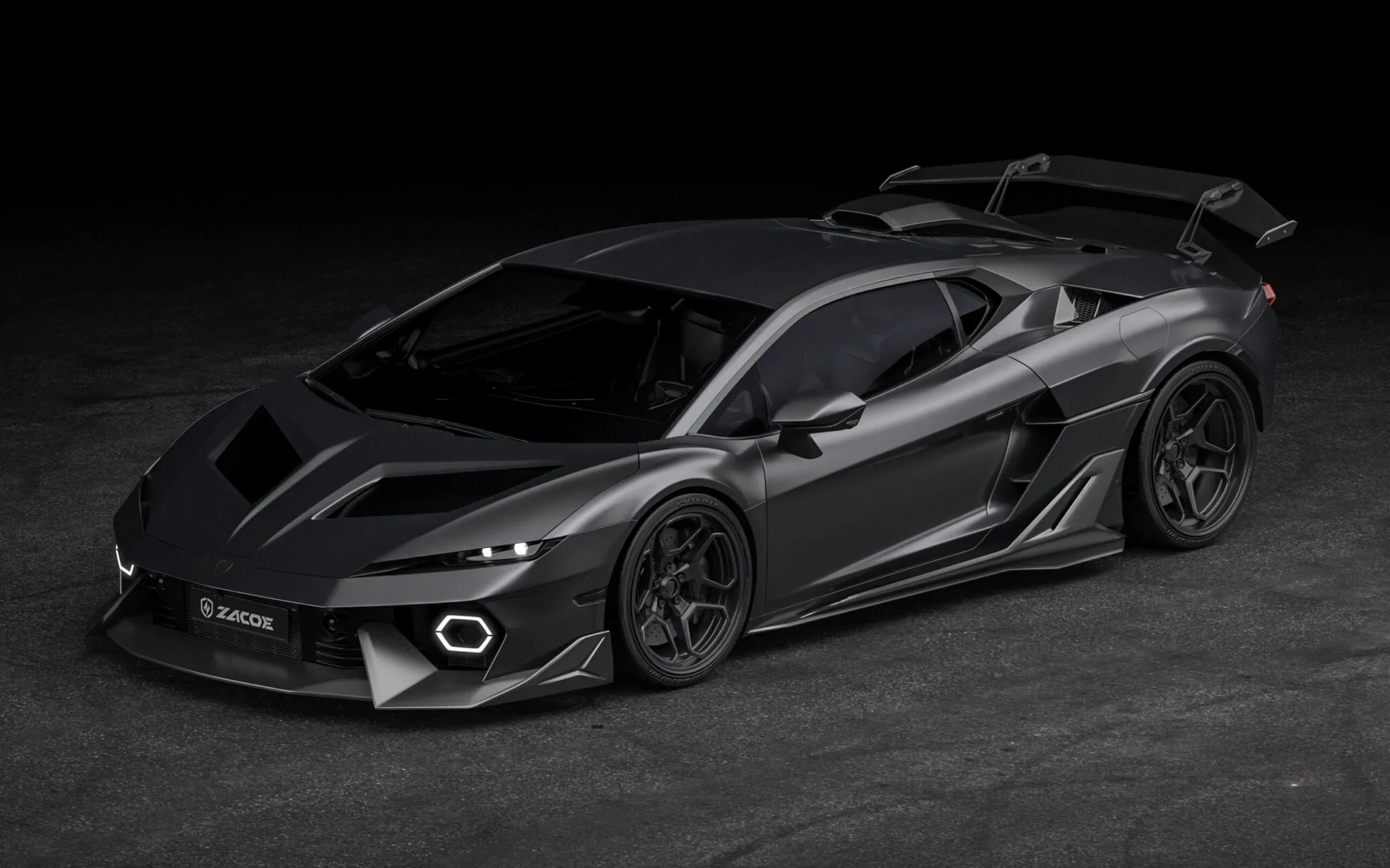 Zacoe says each piece is produced from lightweight, high-strength carbon fiber. The firm does not publish downforce figures, though airflow claims appear in the presentation. Its wording refers to improved aerodynamic balance rather than hard numbers, so no measured gain is attached to the package at this stage.